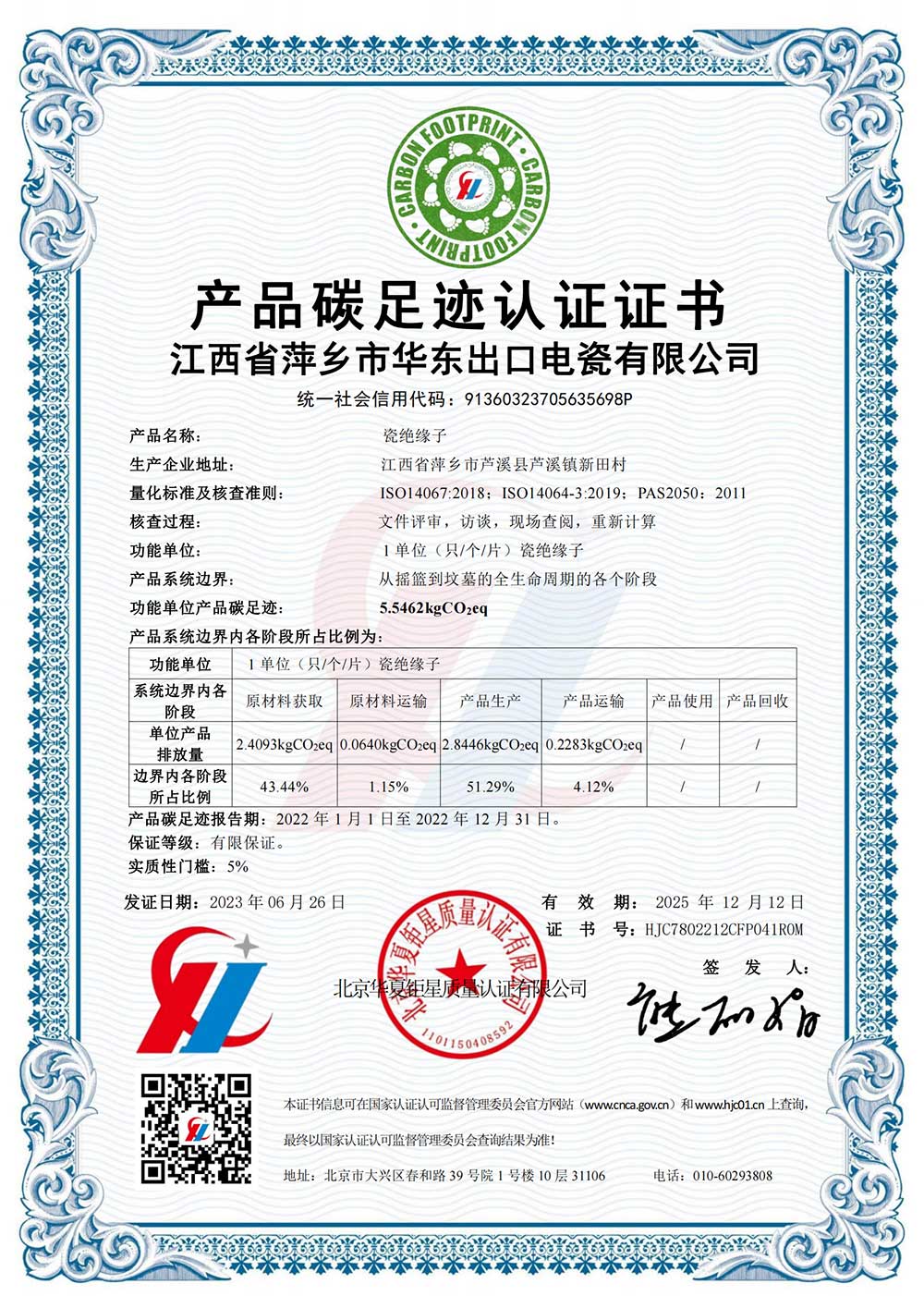 產(chǎn)品碳足跡認(rèn)證證書